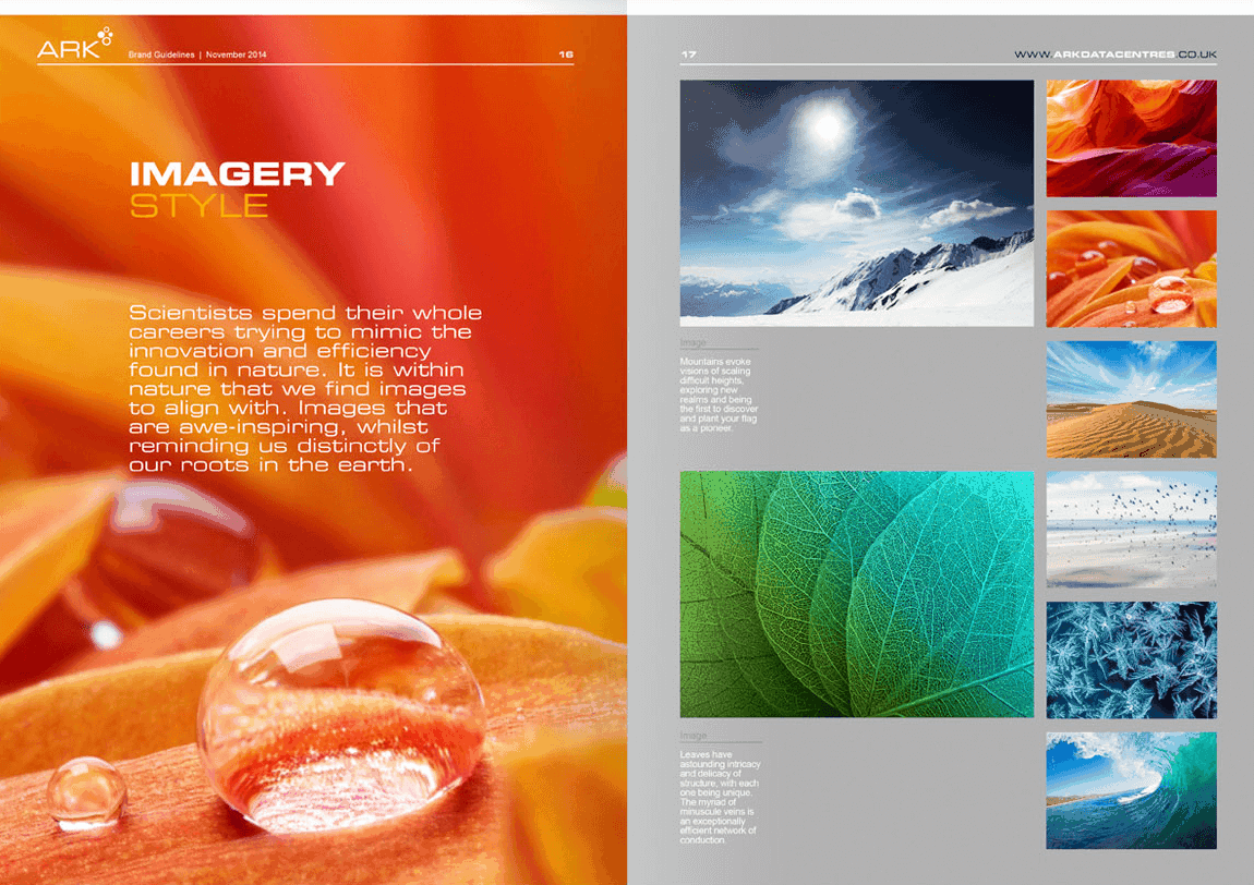 With Ark having a reputation as environmentally friendly pioneers, we were instinctively drawn towards nature for branding inspiration. Scientists spend their whole careers trying to mimic the innovation and efficiency found in nature, and it is within nature that we found images to align with. Our suite of images convey Ark’s deep rooted belief in the importance of being responsible for their impact on the earth.