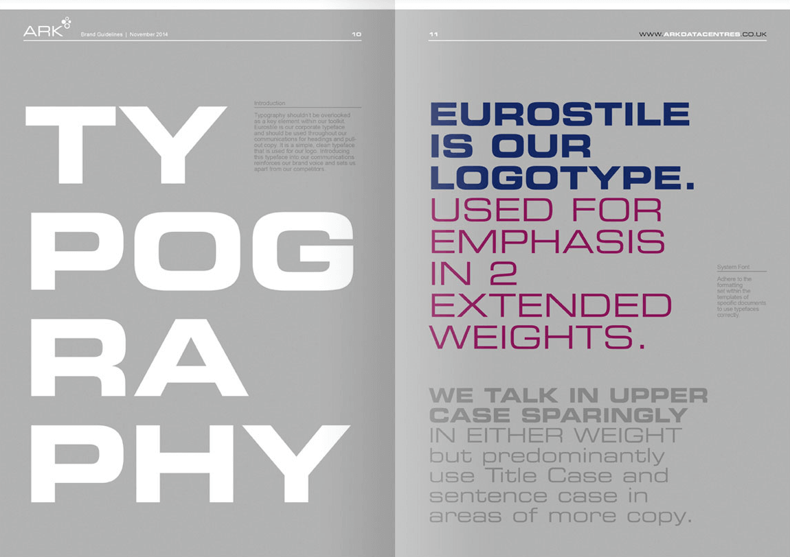 A messaging framework helped to scope out the core identity. Developing the three messaging pillars of ‘passion’, ‘innovation’ and ‘efficiency’ we refreshed the brand, guidelines and a suite of style sheets to update all of Arks collateral, from presentation slides to the website.