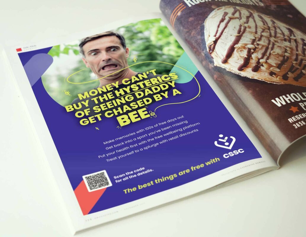 With the campaign positioning and point of differentiation locked, we turned our attention to dialling up distinctiveness. We moved away from standard stock imagery, which had previously made CSSC appear generic and soulless. Instead, we used unexpected, playful visuals that captured real-life experiences, whilst retaining CSSC brand codes to ensure everyone knew who it was.