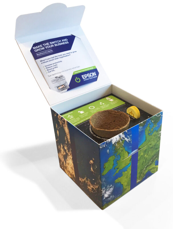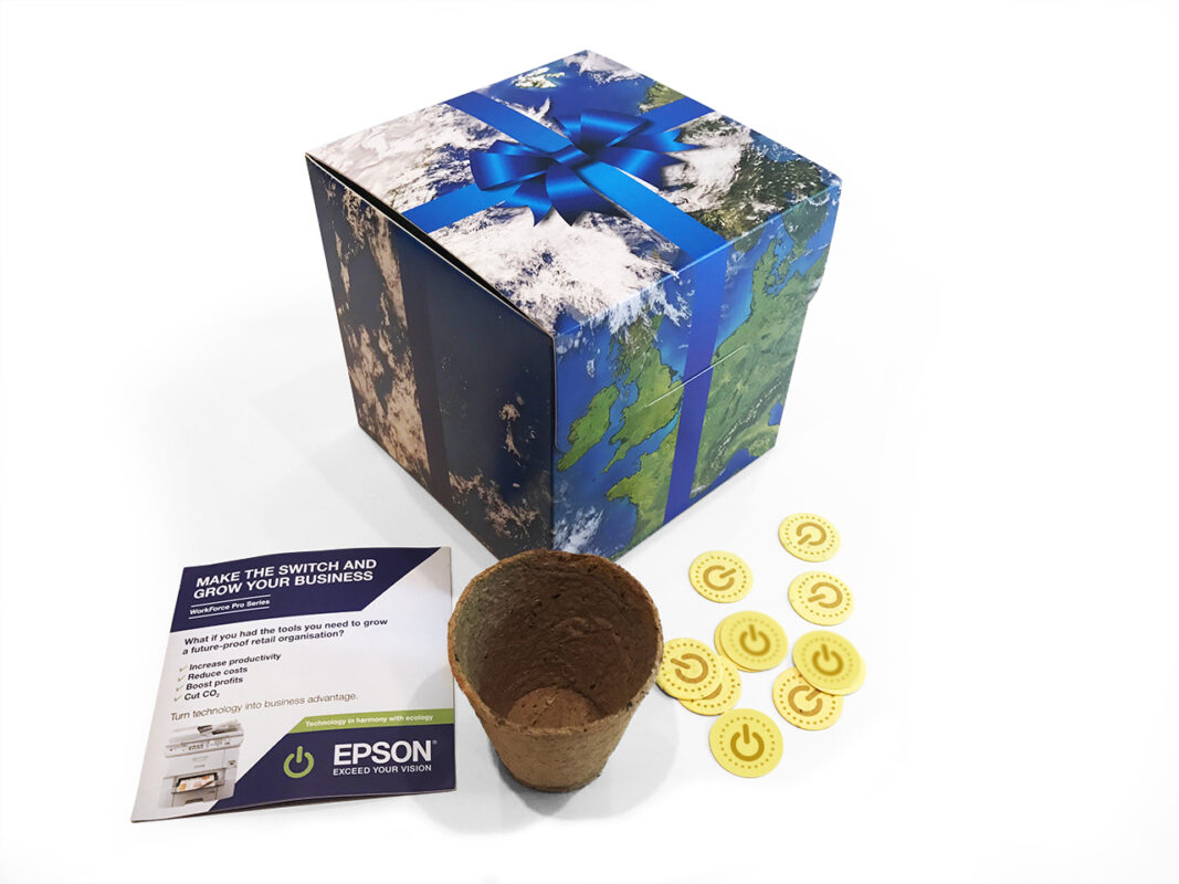 Enter the ‘Earth Box’; the visual embodiment of Epson’s deep-rooted, authentic commitment to preserving and valuing the planet’s future. The box contained a bio-degradable pot sitting in simulated earth, plantable seed-paper coins, organic peat pellet and directions on how to grow the seeds.
