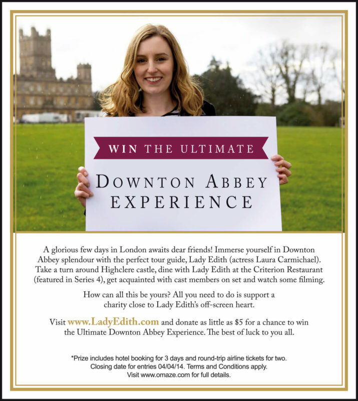 In March 2014, HHA patron Laura Carmichael offered a once in a lifetime experience for Downton Abbey fans, to spend the weekend with her on-set and in London. The aim; to raise money and awareness for this noble cause.
