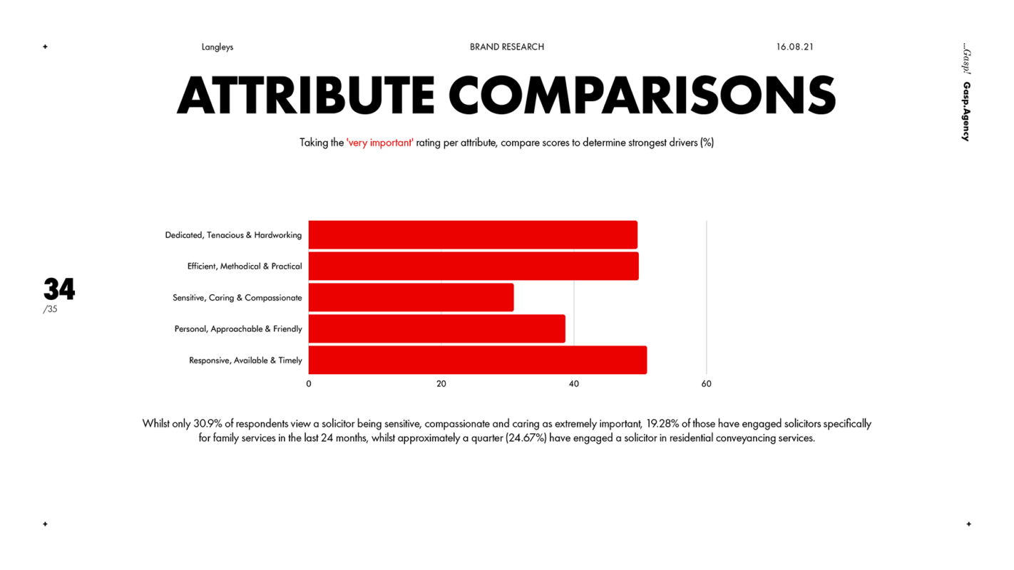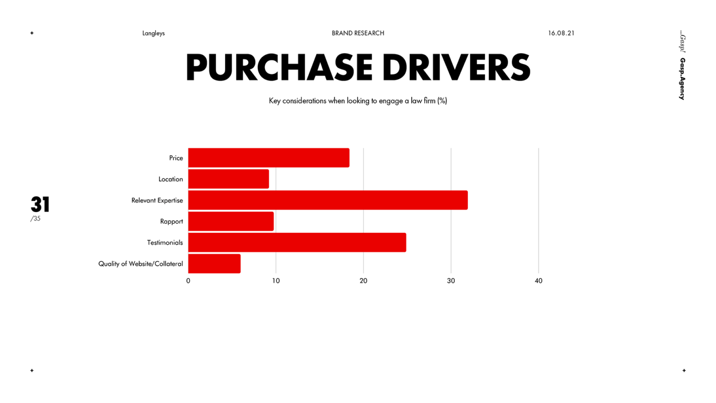 “Getting 30-odd partners in a law firm to agree on anything — let alone an advertising campaign — is no easy task. But ...Gasp! managed it with Langleeeasy, because everyone could see it was brilliant. Brilliantly distinctive, brilliantly on-brief, brilliantly executed, and backed by brilliant research. The results were brilliant as well, with a huge uplift in all of our KPIs in a much shorter timeframe than we were expecting”