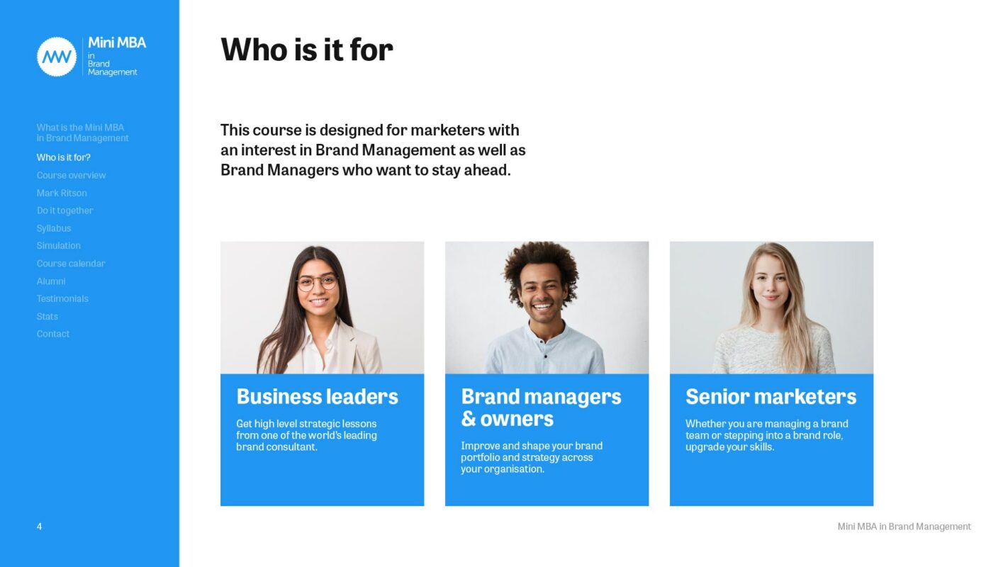 The Marketing Week Mini MBA Series, led by Professor Mark Ritson, are MBA level, CPD accredited courses that bring together decades of Mark’s renowned MBA teaching, brand consultancy and award-winning opinion pieces with one of the UK’s leading marketing publications.