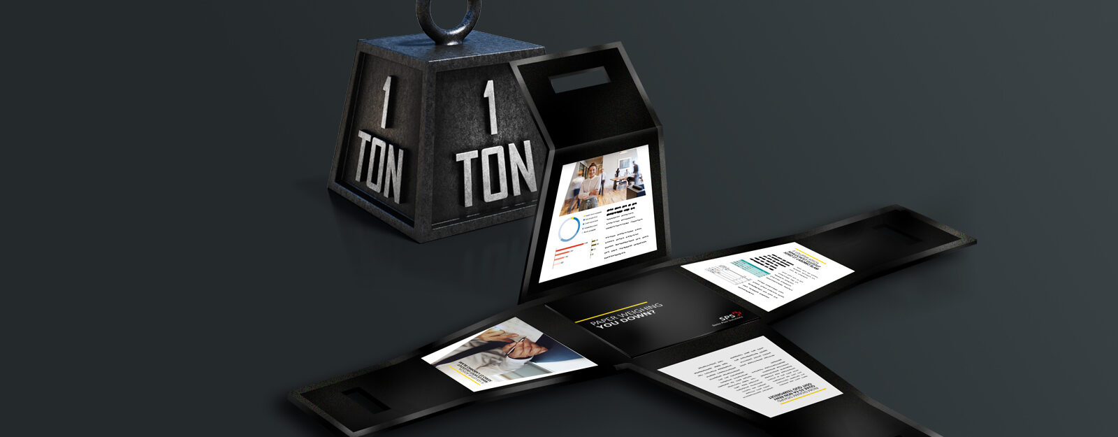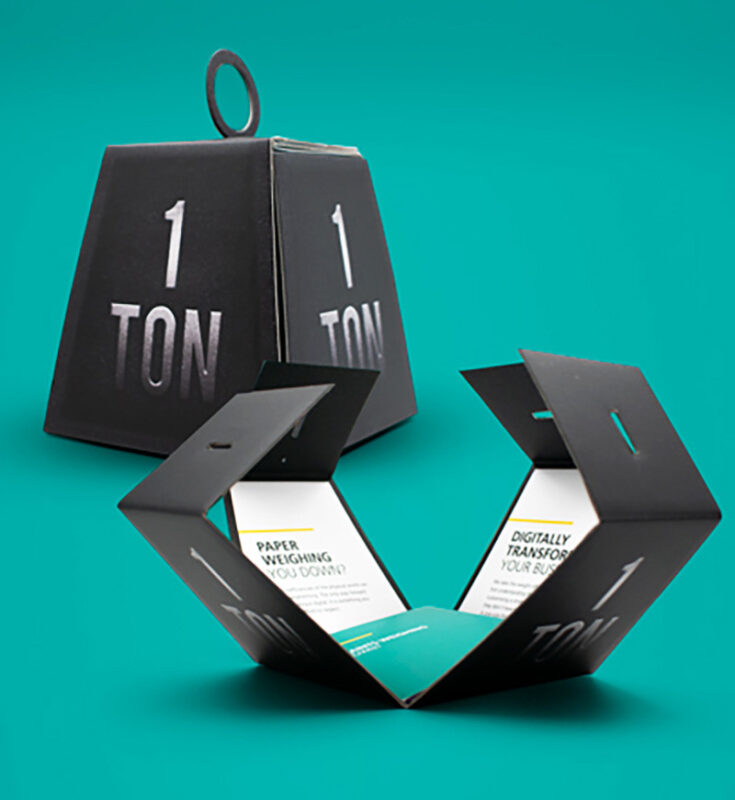This helped us craft compelling message for our DM pilot, a cardboard engineered ‘1 ton’ weight box – conveying the message of inefficiency and paper weighing them down.