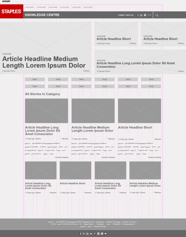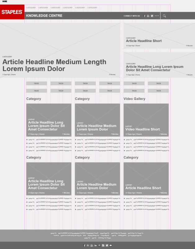 Staples wanted a front-end re-design for their ‘Knowledge Centre’, a central hub of information and content that was integral to their e-commerce website and marketing strategy in four markets (UK, Germany, France and Italy). With plans for it to be rolled out in a further five markets across their European estate, we had to go above and beyond what they currently had: A platform that allowed their customers to have maximum engagement with their content, supported their marketing comms and acted as a conduit in the purchase decision making process.